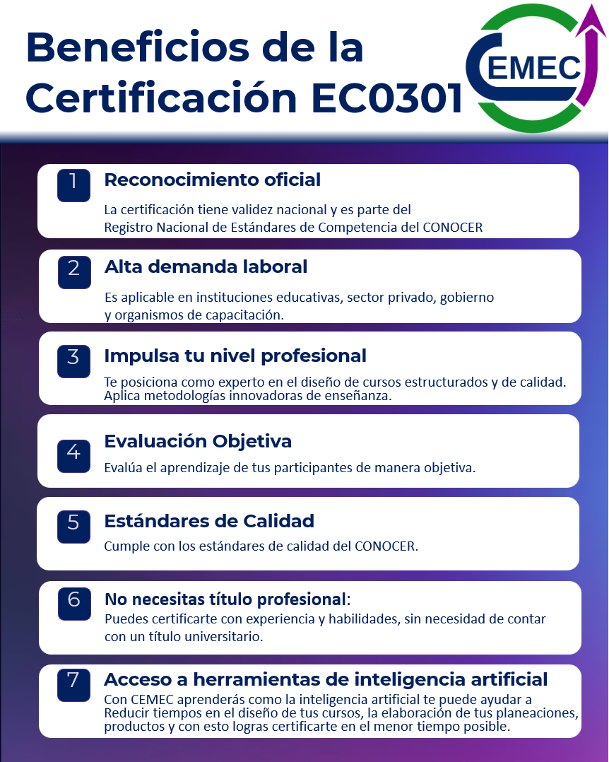🌟 ¿Qué ventajas ofrece la certificación EC0301?